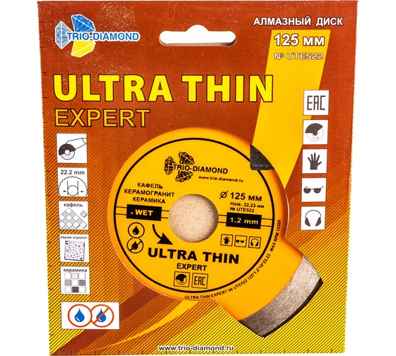 Диск алмазный отрезной Сплошной Ультратонкий Ultra Thin hot press (125х22.23 мм) TRIO-DIAMOND UTE522