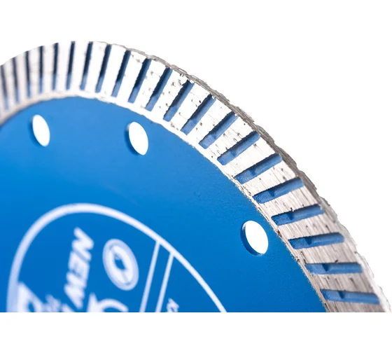 Особенности: диск с рифленой кромкой имеет более чистый и аккуратный по сравнению с сегментными дисками рез. За счет турбированной кромки увеличивается скорость реза, отверстия на теле диска способствуют лучшему охлаждению и продлевают срок службы. Подходит для сухого и мокрого реза.