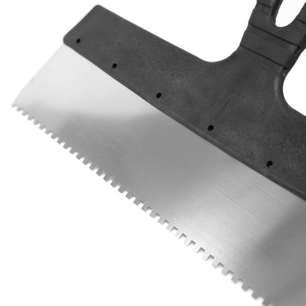 Шпатель применяется для нанесения, выравнивания и сглаживания строительных растворов и смесей. Рабочее полотно изготовлено из нержавеющей стали и устойчиво к образованию коррозии. Эргономичная рукоять служит для комфортной эксплуатации.