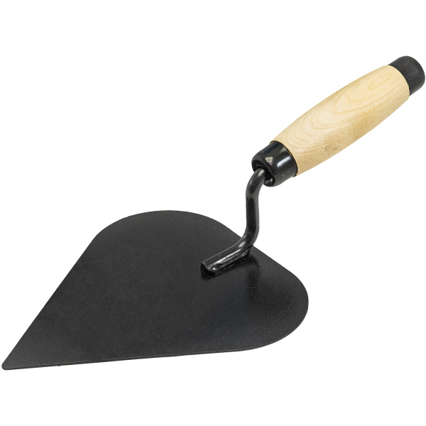 Кельма штукатура в форме сердечка изготовлена из высокопрочной и надежной стали.  Имеет деревянную ручку с металлическим отбойником. Предназначена для для набрасывания и разравнивания штукатурного раствора.