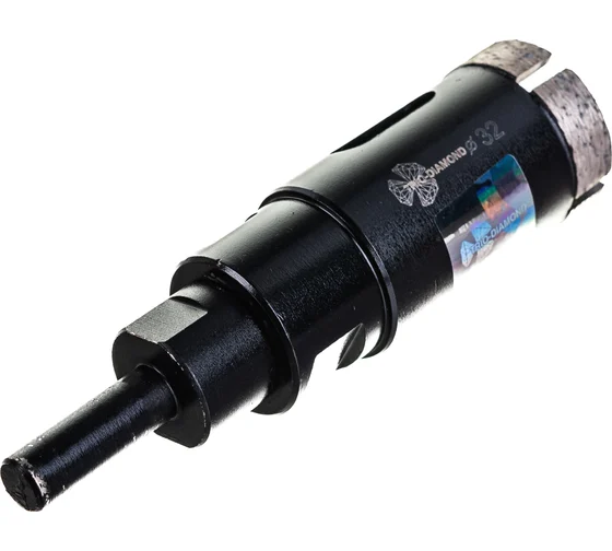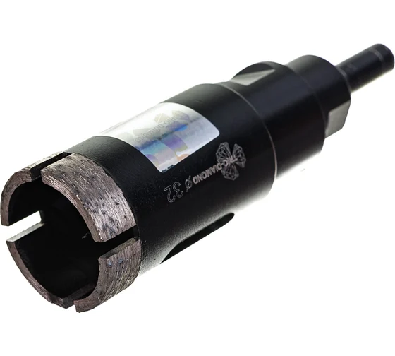Особенности: коронка оснащена съемным цилиндрическим хвостовиком с резьбовым соединением М14, что позволяет высверливать отвертия с помощию дрелей и УШМ. Для работ с водяным охлаждением в безударном режиме.