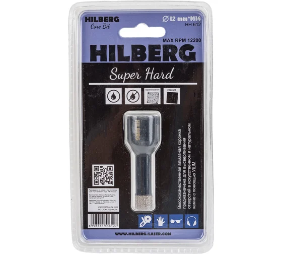Коронка алмазная с воском по керамике и керамограниту Super Hard (12 мм; M14) Hilberg HH612