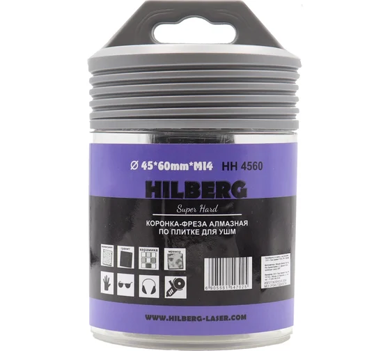 Коронка-фреза алмазная по плитке Hilberg 45-60 мм Super Hard М14 HH4560