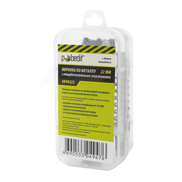 Коронка по металлу с твердосплавными пластинами 22мм Pobedit 4848422