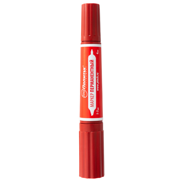 Двухсторонний перманентный маркер используется практически на любой поверхности: из бумаги, пластмассы, резины, кожи, металла, стекла и т. д. Имеет пулевидный и скошенный наконечники.