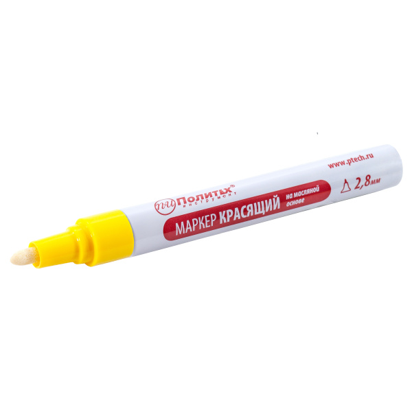 Маркер с жидким красящим составом применяется для нанесения разметки на большинство материалов (картон, металл, пластик, стекло, и т.д.).