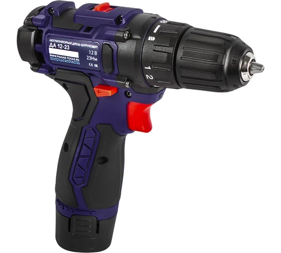 Аккумуляторная безударная дрель ПУЛЬСАР ДА 12-23 12В, 23 Hm, Li-on, 1,5 Ah, 2 аккумулятора, 1.3 кг, 916-936