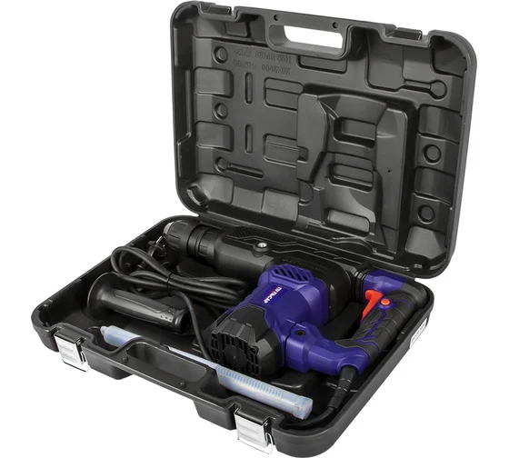 Для удобной транспортировки и хранению отбойный молоток поставляется в кейсе.