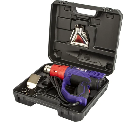 Строительный фен имеет мощность 2000 Вт, подходящий как для профессиональных, так и для бытовых работ.