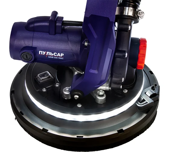Шлифмашина для стен и потолков ПУЛЬСАР ШМБ 225-900С (900 Вт, 225мм, 800-1800 об\мин, LED-подсветка, телескоп, самовсасывающая, мешок) 918-923