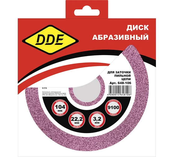 Диск абразивный точильный 104х3,2х22,2 мм для цепи 3/8PM, 0.325, 1/4 DDE 648-106