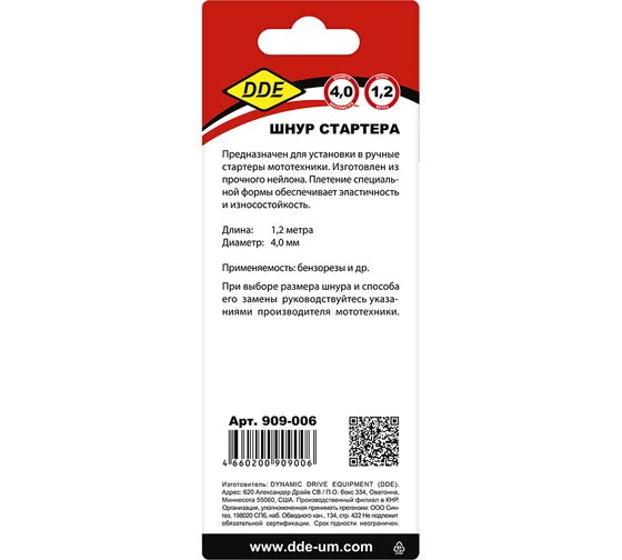 Шнур стартера в блистере 4 мм, 1.2 м DDE 909-006