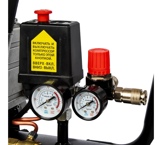 Поршневой масляный компрессор предназначается для нагнетания сжатого воздуха в пневмоинструмент. На днище ресивера предусматривается спусковой клапан, который позволяет легко и быстро слить образовавшийся конденсат. Встроенные манометры позволяют контролировать рабочее давление. Благодаря транспортировочным колесам и рукоятке компрессор легко и удобно перемещается по рабочей площадке.