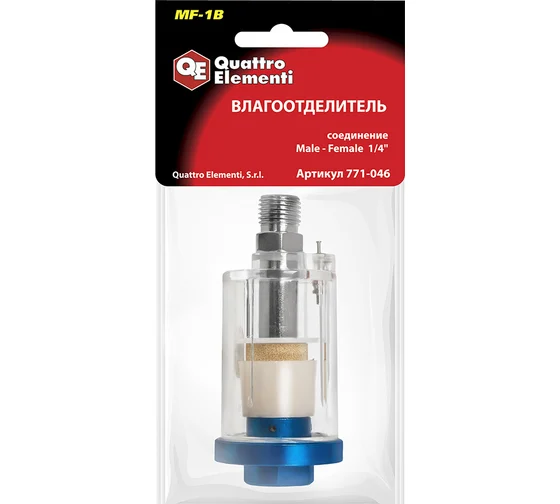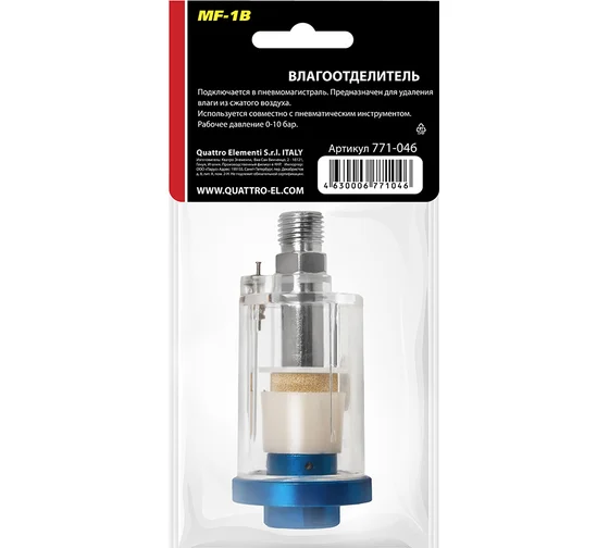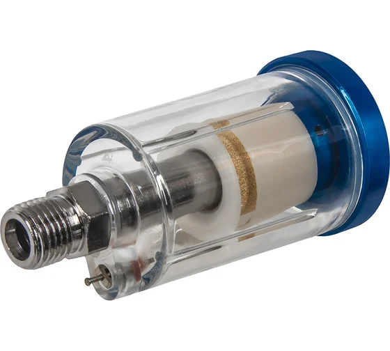 Фильтр воздушный используется совместно с пневмоинструментом. Фильтр подключается в пневмомагистраль и служит для удаления влаги из сжатого воздуха. Рабочее давление 0-10 бар. Соединение папа 1/4" - мама 1/4".