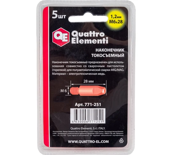 Наконечник токосъемный (5 шт; 1.2 мм; M6x28 мм) QUATTRO ELEMENTI 771-251