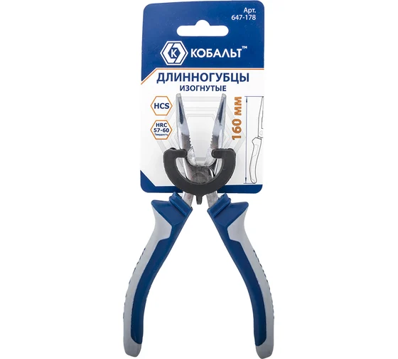 Длинногубцы КОБАЛЬТ изогнутые 160 мм 647-178