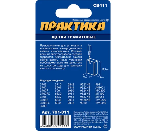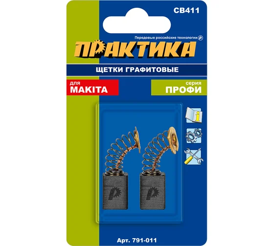 Щетка графитовая для MAKITA (аналог CB-411/арт.191940-4) с пружиной, 6x9x12 мм ПРАКТИКА 791-011