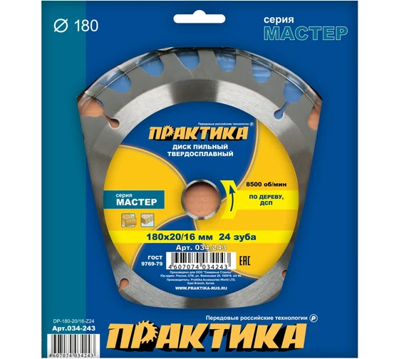Диск пильный по дереву (180х20/16 мм; Z24) ПРАКТИКА 034-243