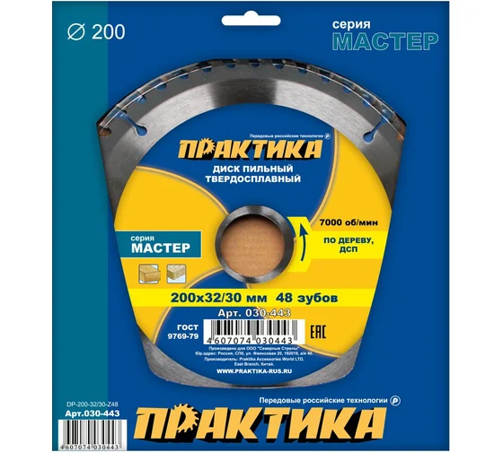 Диск пильный по дереву (200х32/30 мм; Z48) ПРАКТИКА 030-443