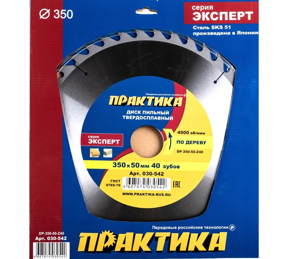Диск пильный по дереву (350х50 мм; Z40) ПРАКТИКА 030-542