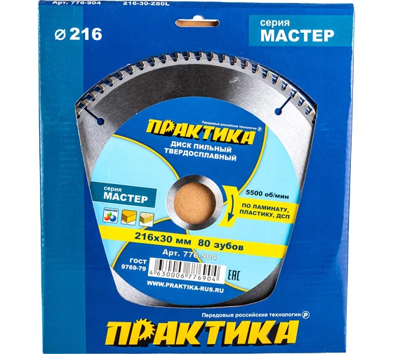 Диск пильный по ламинату (216х30 мм; Z80) ПРАКТИКА 776-904