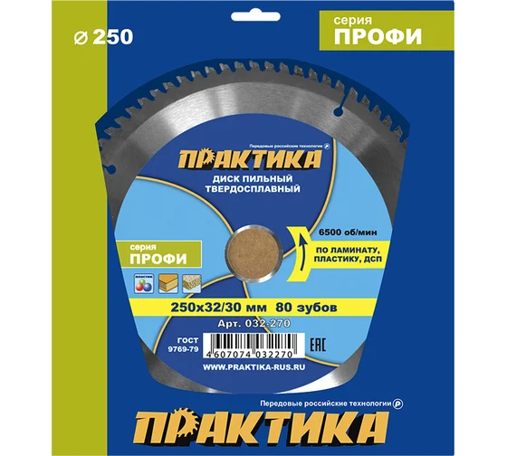 Диск пильный по ламинату (250х32/30 мм; Z80) ПРАКТИКА 032-270
