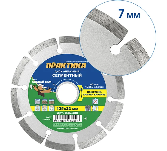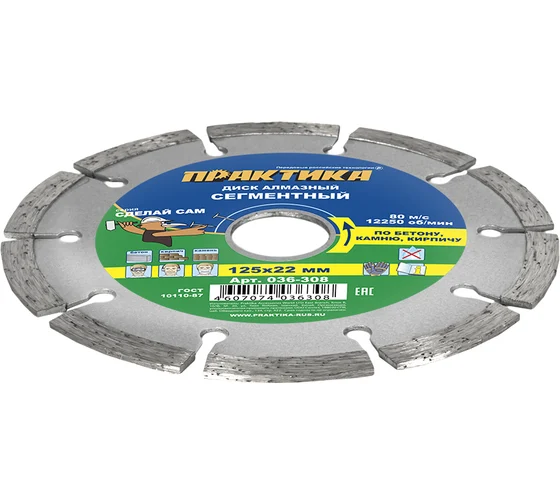 Диск алмазный сегментный (125х22.2 мм) ПРАКТИКА 036-308