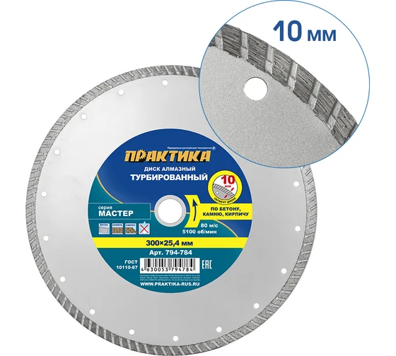 Диск алмазный турбированный Мастер (300x25.4/20 мм) ПРАКТИКА 794-784