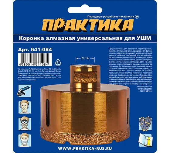 Коронка алмазная универсальная (82 мм; М14) для УШМ ПРАКТИКА 641-084