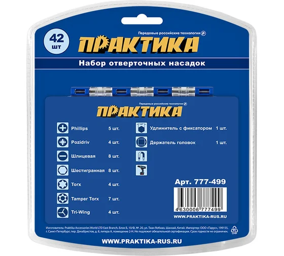 Набор бит (42 шт; PH; PZ; SL; Torx; T/Torx; TW; Hex; 25 мм + магнитный держатель) ПРАКТИКА 777-499
