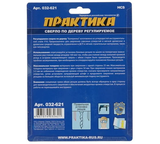 Сверло по дереву регулируемое балеринка (30-120 мм) ПРАКТИКА 032-621