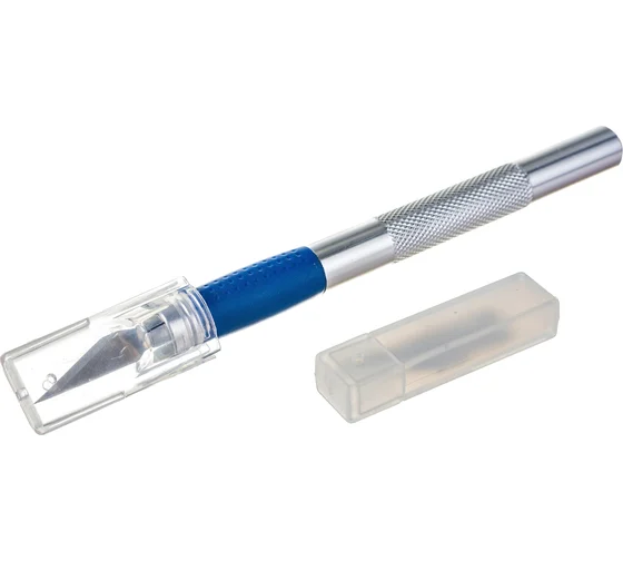 Нож для художественных работ КОБАЛЬТ перовые лезвия 6 шт, металлический корпус 245-053