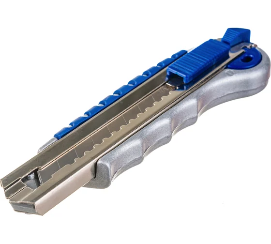 Технический нож 18 мм способствует быстрому и легкому резу тонких материалов из неплотной текстуры, например: бумаги, картона, обоев, линолеума, резины, пластика и т. д. Изделие имеет несколько удобных функций - автостоп и быструю смену лезвий, а также дополнительно оснащено фиксатором лезвия. Ручка ножа выполнена из металла с прорезиненными вставками.