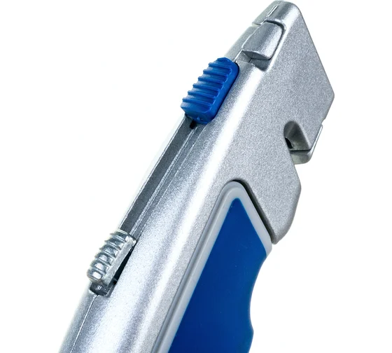 Технический нож 19 мм используется для резки тонких материалов, не плотной текстуры, например: бумаги, картона, резины, пластика, линолеума и пр. Изделие имеет прочный металлический корпус с прорезиненной накладкой в зоне обхвата ладонью. В конструкции предусмотрена кнопка быстрой смены лезвия и стропорез.