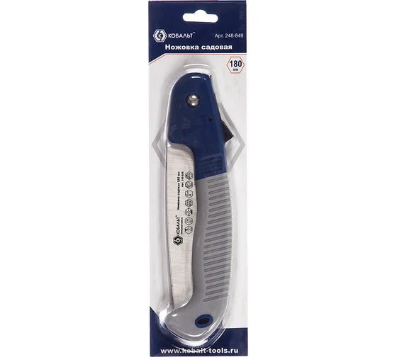 Ножовка садовая КОБАЛЬТ 180 мм, шаг 3.5 мм/ 7 TPI, закаленный зуб, 3D-заточка, двухкомпонентная рукоятка, складная 248-849
