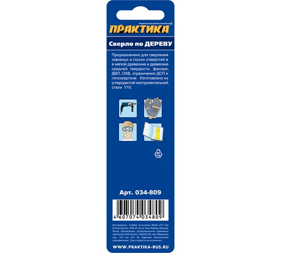 Сверло по дереву (4 мм) ПРАКТИКА 034-809