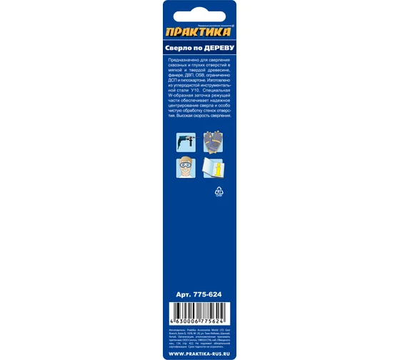Сверло по дереву (10х120 мм) ПРАКТИКА 775-624