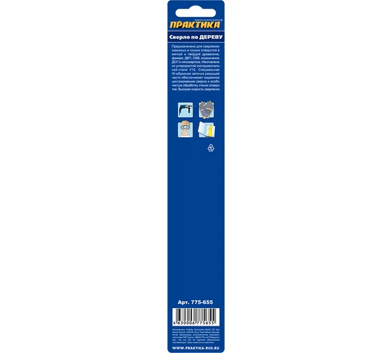 Сверло по дереву (12х200 мм) ПРАКТИКА 775-655