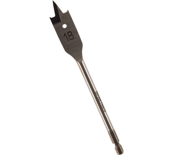 Перовые сверла изготовлены из высококачественной углеродистой инструментальной стали У10А. Шестигранный хвостовик 1/4'' может использоваться со стандартными магнитными держателями для бит, это позволяет быстро менять инструмент. Хорошо фиксируется в кулачковом патроне без проскальзывания. Сверла имеют боковую подрезку для чистого сверления неглубоких и сквозных отверстий в мягкой и средней твердости древесине. Высокая скорость сверления. Допустима перезаточка.
