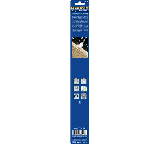 Сверло перовое по дереву (12х300 мм) ПРАКТИКА 774-108