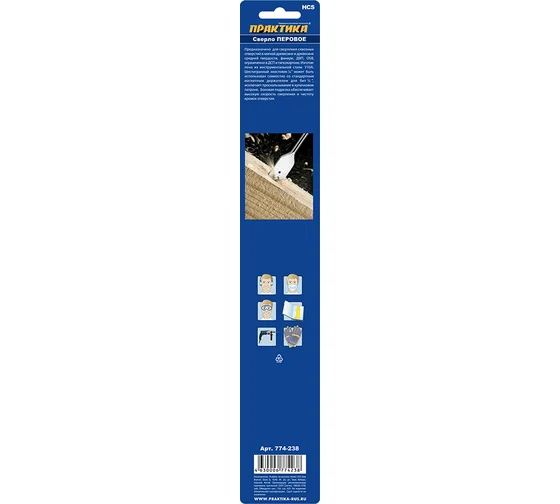 Сверло перовое по дереву (28х300 мм) ПРАКТИКА 774-238