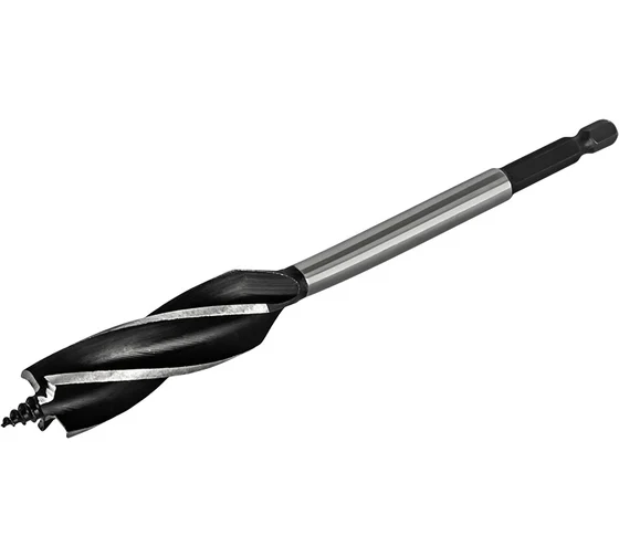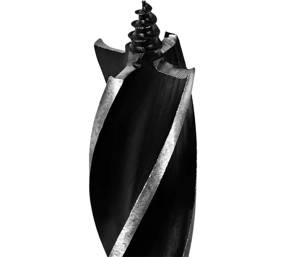 Резьбовое центрирующее острие обеспечивает самозатягивание сверла в материал, снижая усилия оператора.