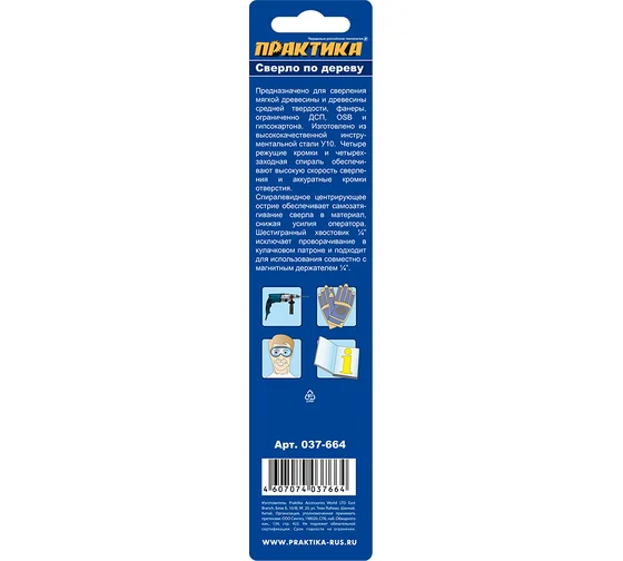 Сверло по дереву X-тип (18x165 мм; в блистере) ПРАКТИКА 037-664