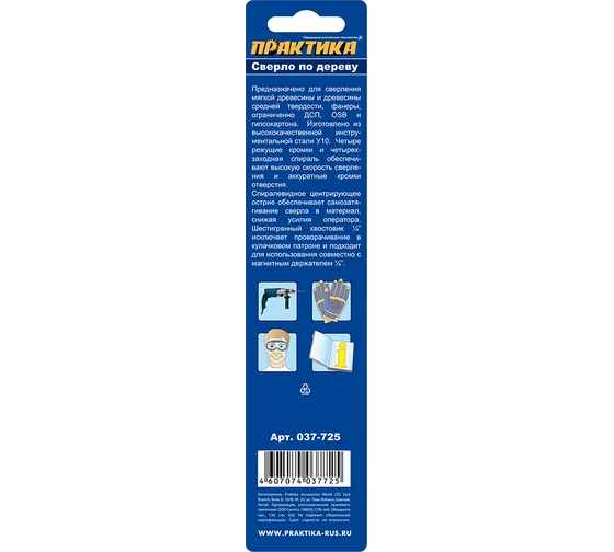 Сверло по дереву X-тип (28x165 мм; в блистере) ПРАКТИКА 037-725
