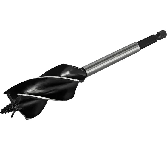 Резьбовое центрирующее острие обеспечивает самозатягивание сверла в материал, снижая усилия оператора.