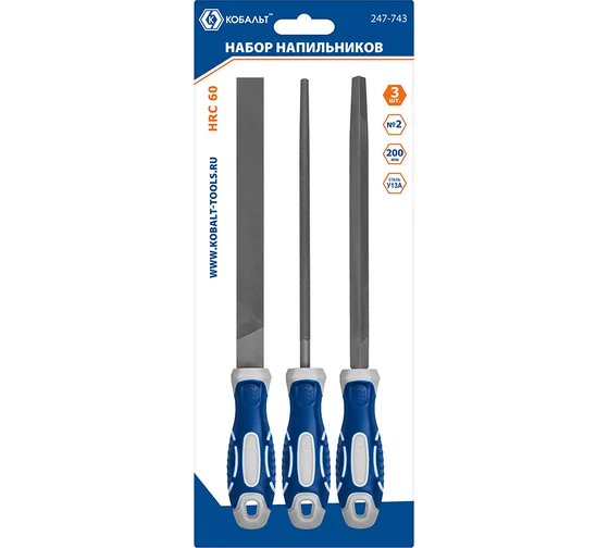 Набор напильников КОБАЛЬТ двухкомпонентная рукоятка, № 2, 200 мм (3 шт.) 247-743