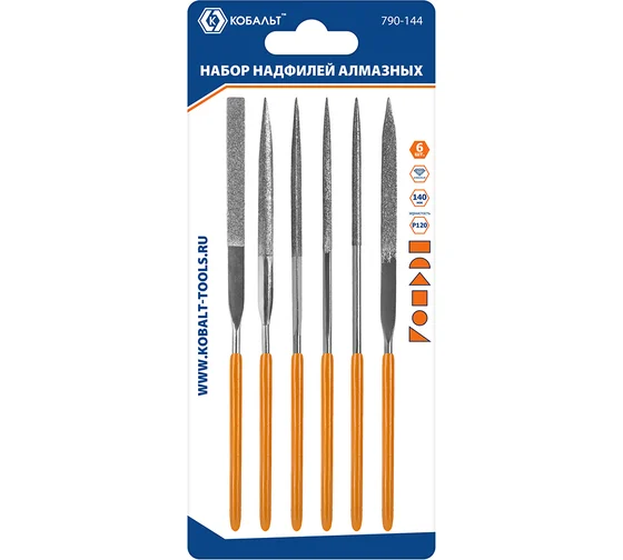 Набор надфилей КОБАЛЬТ алмазных, 140х 50х3 мм, обрезиненные рукоятки (6 шт.) 790-144