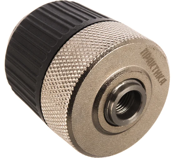 Патроны быстрозажимные двухмуфтовые усиленные. Высокая скорость и удобство смены насадок. Патрон для установки на дрелях высокой мощности. Применение металлической муфты позволяет выдерживать более высокие нагрузки. В конструкцию включен механизм фиксации усилия затяжки сверла. Повышенная сопротивляемость истиранию при сверлении в углах.