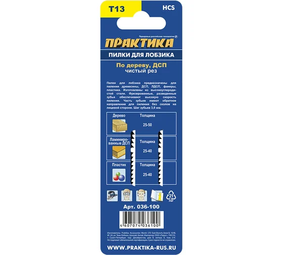 Пилка (2 шт; T13) для лобзиков ПРАКТИКА 036-100