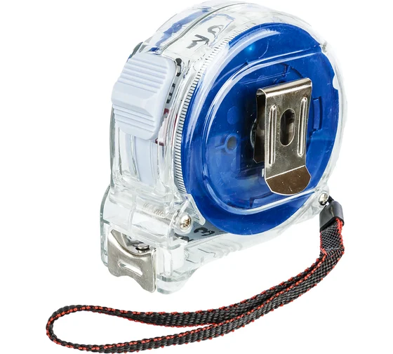 Рулетка КОБАЛЬТ применяется для измерения поверхностей и предметов. Ее корпус выполнен из прозрачного ABS-пластика и обладает высокой прочностью. Стальная лента имеет крупные значения шкалы, что облегчает считывание данных даже при слабом освещении. Благодаря подпружиненному амортизатору происходит гашение удара при смотке ленты.